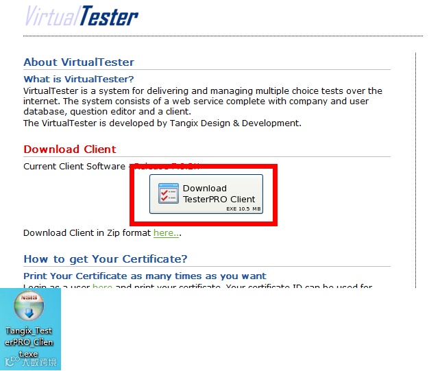 下载考试客户端:Tangix_TesterPRO_Client.exe;