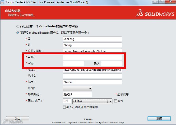 邮箱一定要填写自己的邮箱(邮箱将作为登陆账号)