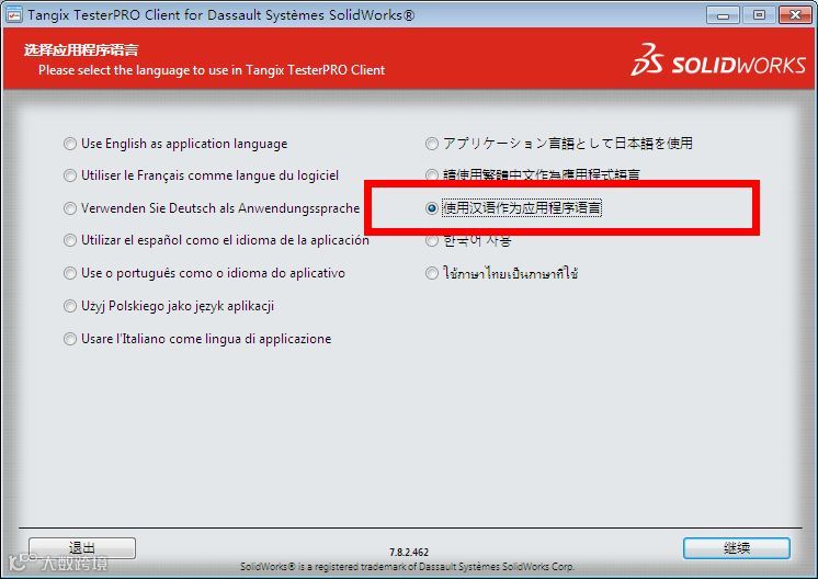 ➤安装完成后选择运行,选择“使用汉语作为应用程序语言”