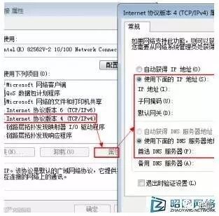 ➤在弹出的对话框中选择“属性”,勾选并点选“Internet协议版本4(TCP/IPv4)”,选择“属性”,并设置服务端所需要的IP地址,如192.168.X.XXX,确认即可完成。