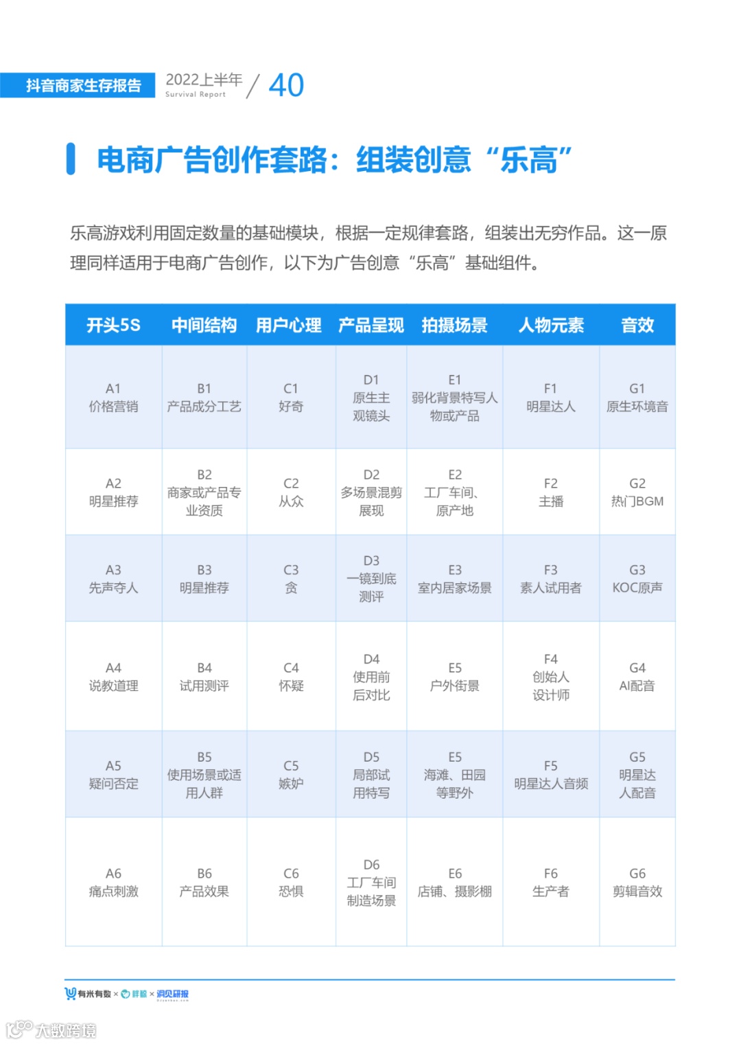 乐高游戏利用固定数量的基础模块,根据一定规律套路,组装出无穷作品,这一原理同样适用于电商广告创作,以提升素材制作效率。报告从创意内容