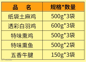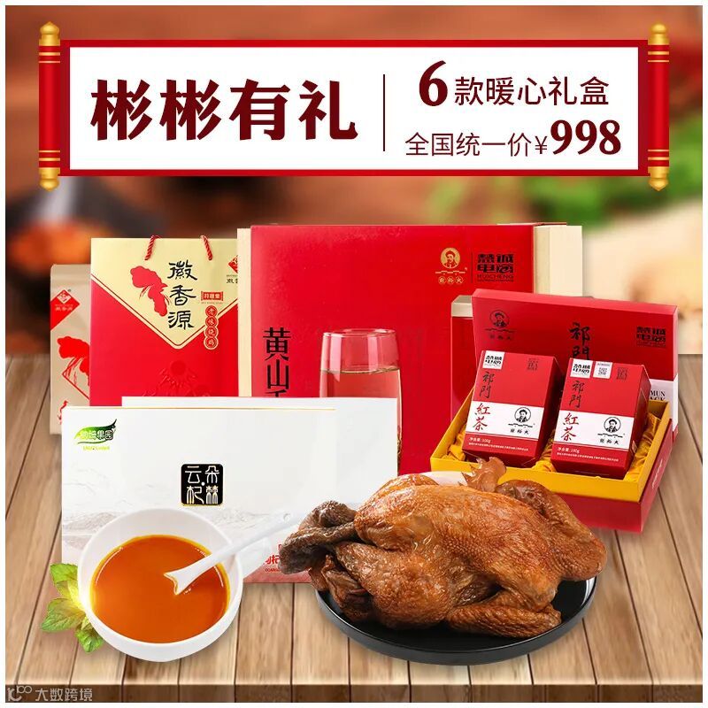 谢裕大一级毛峰礼盒200g*1 土麻鸡珠光礼盒1300g*1 白羽鸡剪纸礼盒1200g*2 五香牛腱150g*3 |