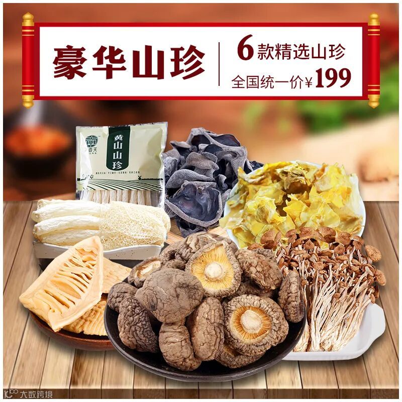 竹荪25g *2 精品香菇 160g*1 茶树菇100g*1 黑木耳120g*2 笋衣120g*3 笋尖200g*1 |
