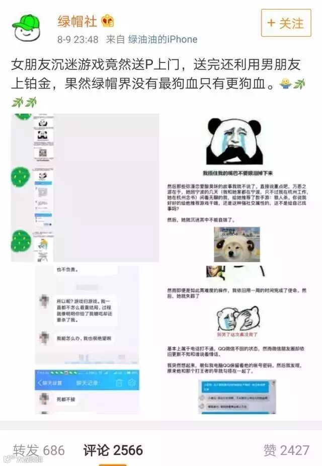 故事要从微博大V@绿帽社的