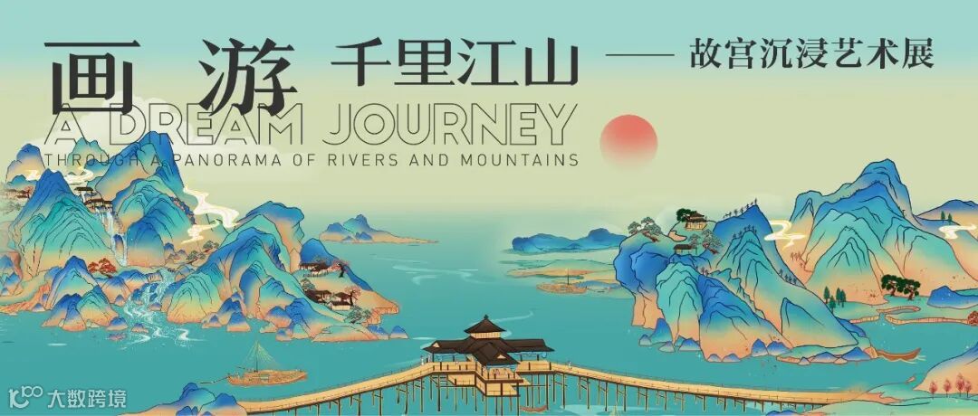 超大的手绘风格立体画,为展览融入了富有想象力的视觉元素,趣味性地展示了千里江山图中的诸多细节,在这里,大家可以走入层层叠叠的青绿山水中,感受“咫尺有千里之趣”的诗意江山。