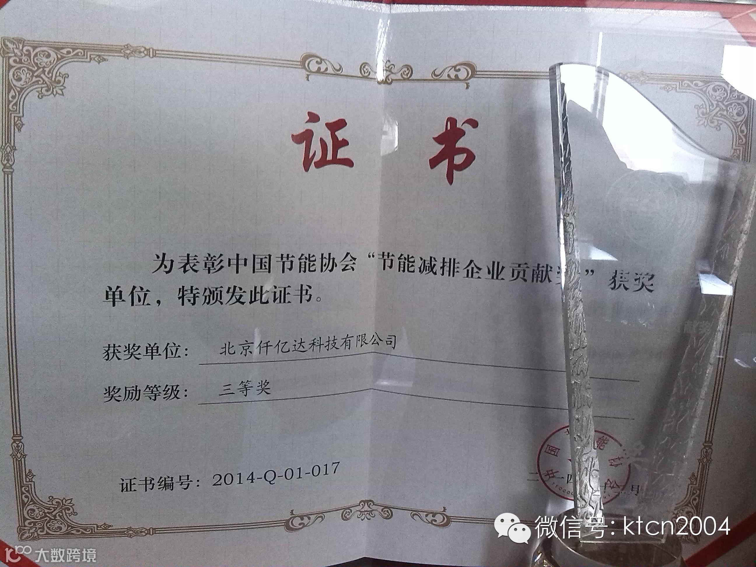 为了奖励节能减排领域中通过科学研究、技术创新与开发、科技成果推广应用和产业化、创新管理等方面取得卓著成绩或做出突出贡献的单位和项目,2014年协会开展了“中国节能协会创新奖”评选活动。会上为获奖的 55家企业和项目颁发了荣誉证书和奖杯。其中:企业贡献奖18家,科技进步奖16项,技术发明奖20项,31家会员单位获奖。北京仟亿达科技股份有限公司获企业贡献三等奖。