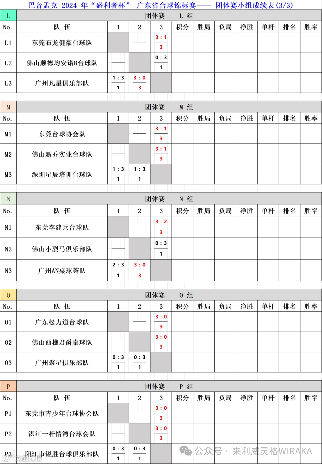 巴音孟克2024 年“盛利者杯”广东省台球锦标赛首日进行的是团体赛的比赛。团体赛分两个阶段,第一阶段为分组循环赛。50支队伍分成15组,每组前两名队伍晋级第二阶段单淘汰赛。