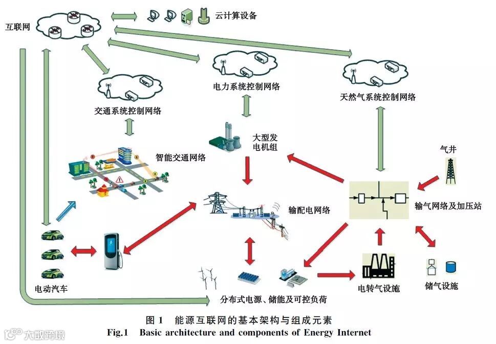 能源互联网是以电力系统为核心,以互联网技术和新能源发电技术为基础,并结合了交通、天然气等系统构成的复杂多网流系统。建立能源互联网的主要目标是利用互联网技术推动由集中式化石能源利用向分布式可再生能源利用的转变。
