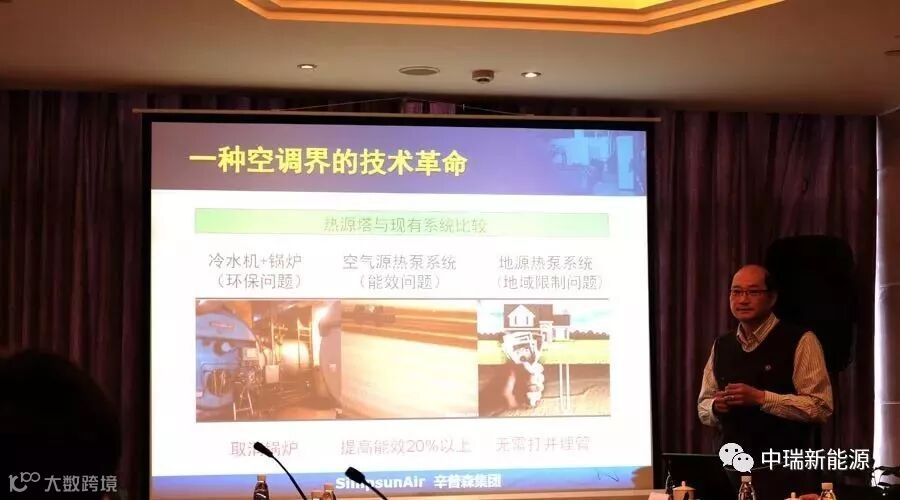 会上,江苏辛普森总裁殷叔靖为与会人员介绍了辛普森公司近年来的发展及所取得的成就。详细讲解了辛普森公司的热源塔热泵技术、煤改电项目–低温空气源热泵技术、地源热泵和地源别墅技术、浴室节能热泵热水技术、高温热泵技术等创新产品技术。