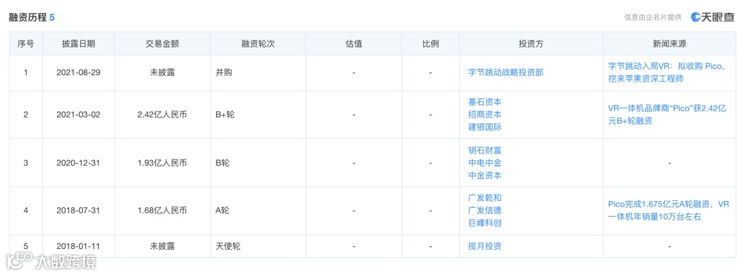 一直以来,Pico融资节奏不快。最近一次是今年3月,完成2.42亿元人民币B+轮融资,资方有基石资本、招商资本和建银国际等。