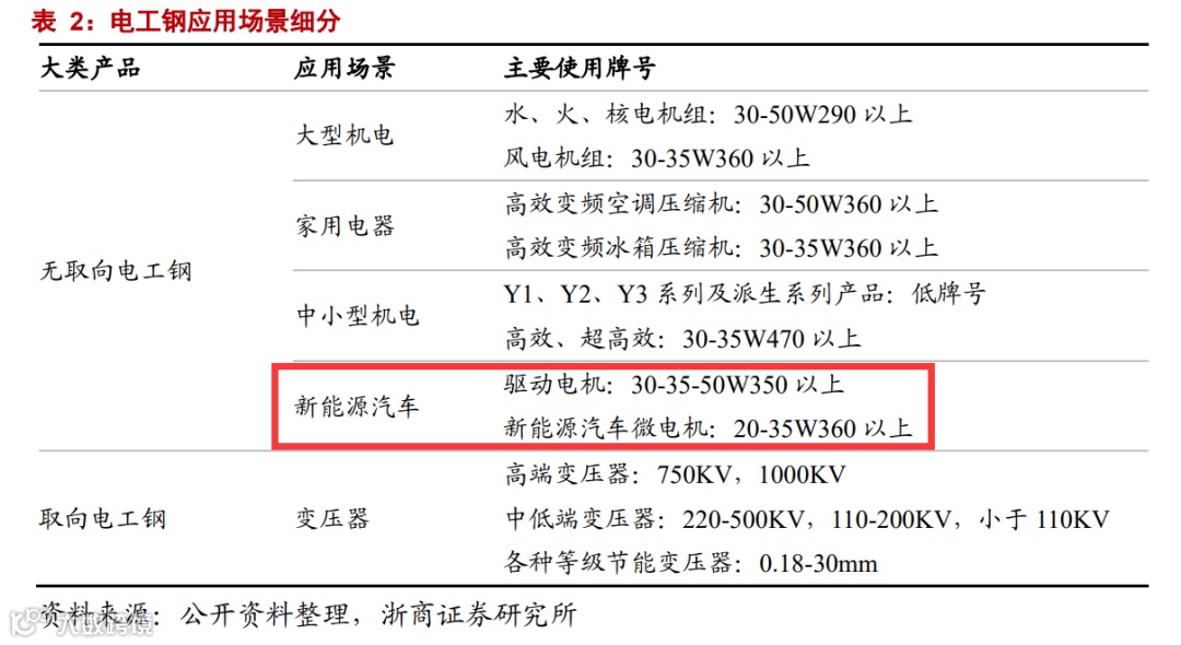 浙商证券指出,为满足双碳及能源双控,国家鼓励家电、工业电机能效等级提升,未来在这些领域中对于高牌号无取向电工钢的需求将快速提升。新能源汽车所需的高牌号无取向硅钢需求预计2025年达到80-100万吨,5倍以上增长空间。