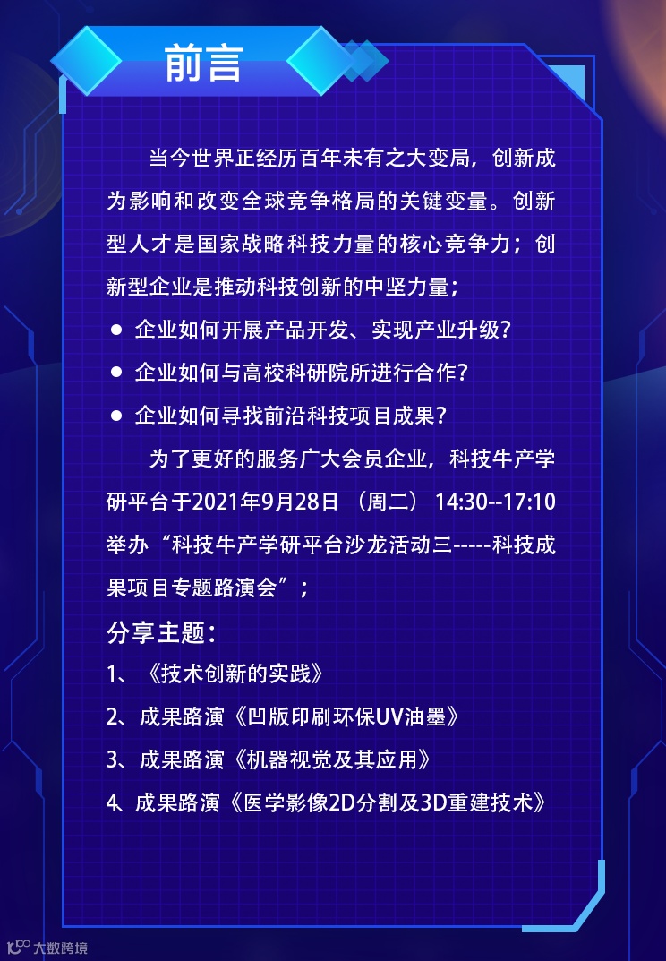 科技牛产学研平台沙龙活动系列之三-----科技成果项目专题路演会