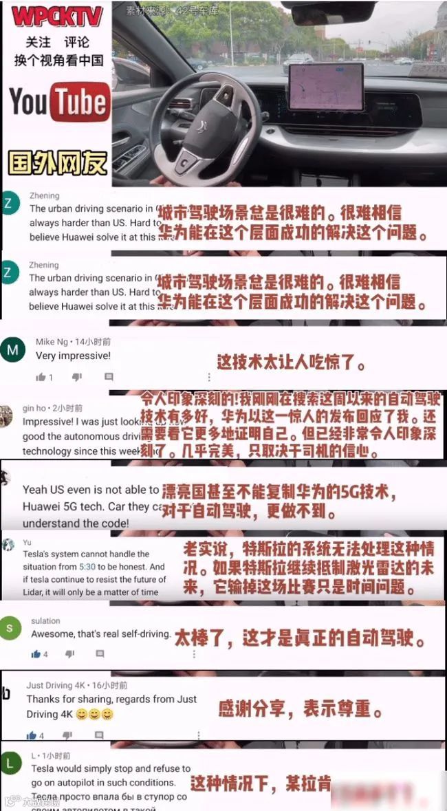 有国外网友认为华为的自动驾驶技术已经超过特斯拉: