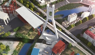 据悉,龙岩大桥连续跨越赣龙铁路、龙厦铁路,每天有近120班列车经过。为降低桥梁施工对铁路交通的影响,大桥需采取转体施工法进行建设。同时,由于该桥主塔采用了扁平的“宝石”型设计,主塔侧面距铁路的最近距离不足6.5米。为保障施工安全,需要在“塔梁共转”的常规转体施工前,对桥梁主塔首先进行一次“独塔单转”,即主塔在距铁路20米左右距离建设完成后,首先进行单独转体。主塔到位后,再进行桥面梁体架设施工,待桥面梁体全部安装完成,主塔和桥面再整体进行第二次转体。一座桥梁在建设过程中进行两次转体的施工方法,开创了世界桥梁转体施工领域的先河。
