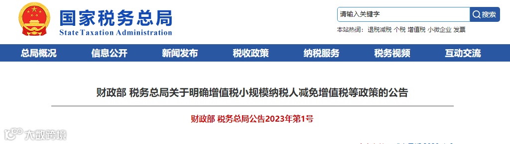 1月9日,财政部 税务总局关于明确增值税小规模纳税人减免增值税等政策的公告(税务总局公告2023年第1号):