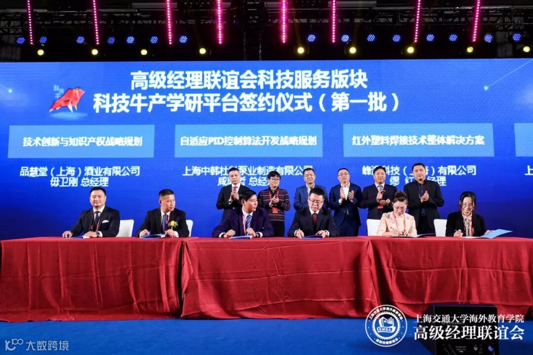 本次迎新会分为论坛与晚宴两大板块。在下午的高级经理联谊会科技服务版块签约仪式上,科技牛与到场的10家校友企业现场签约。本着“资源共享、优势互补、合作发展”的原则,科技牛将发挥在技术转移成果转化和知识产权领域的优势,为技术成果的转化和科技创新能力的提升,携手企业共同进步。