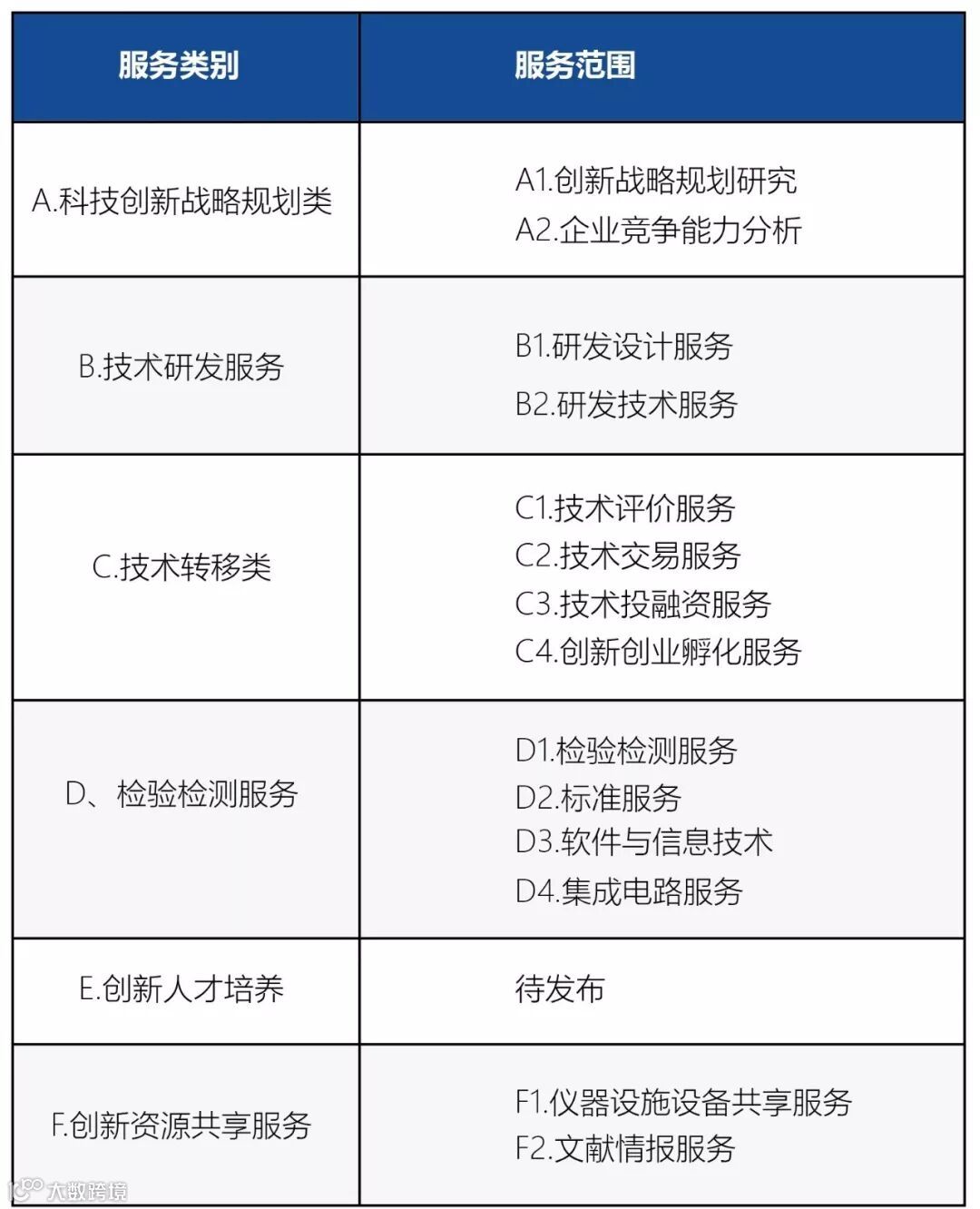 答案:创新券目前支持6大类14项服务,具体的服务事项清单,由市科委发布和动态更新。详见以下图表