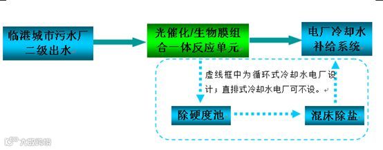 目前国外发达国家的污水回用开展较早,已有将城市污水厂二级出水,经进一步采用不同工艺进行深度处理后供电厂冷却水回用的成功范例。我国在该领域中的应用正在积极探索中。当前我国的电厂回用水水质国家标准:COD为20mg/L;NH3-N为5mg/L;SS<10mg/L,上海临港新城的城市污水厂的二级出水指标为:COD为40-50mg/L;NH3-N为15-20mg/L;SS为10-15mg/L。可见临港新城城市污水厂的二级出水指标距离国家电厂回用水水质标准已经很接近,只需采用经济合理的深度处理工艺将COD和NH3-N进一步降至国家标准即可。