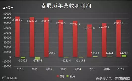 首先,来看一下索尼近年来的营收和利润数据: