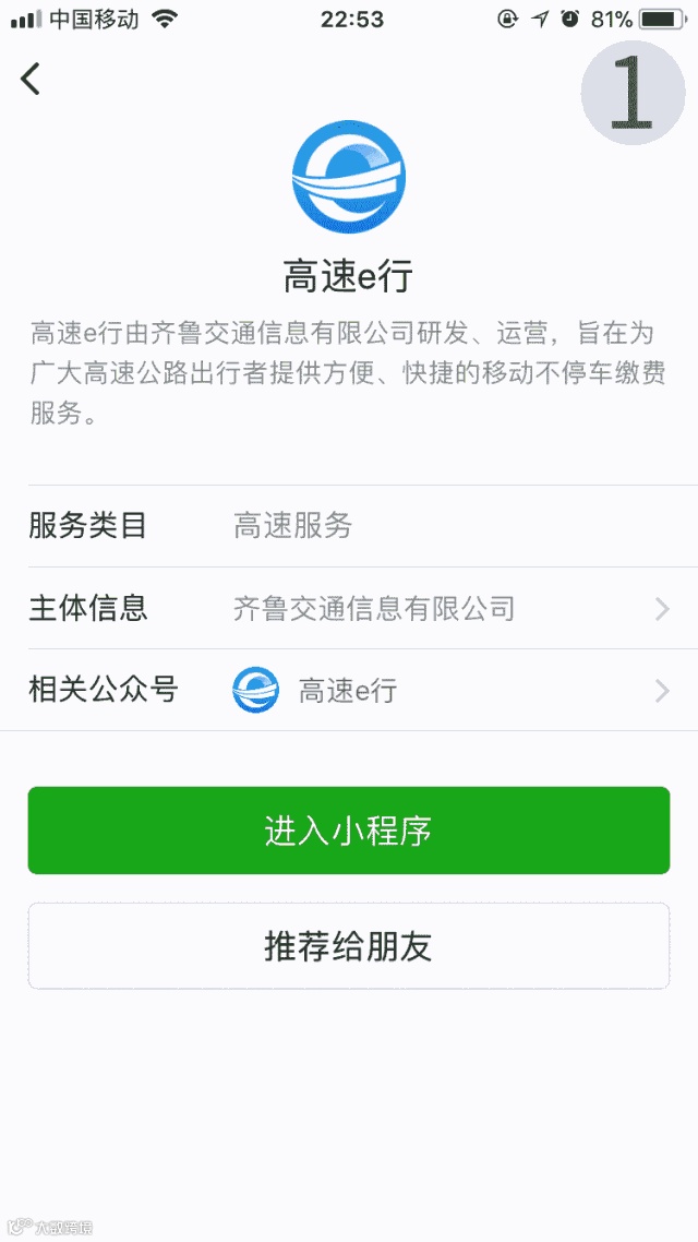 近日,微信上线了“高速e行”小程序。这是全国首个实现“车牌识别、直接通行、自动扣费”的小程序,目前已在山东省进行试点。