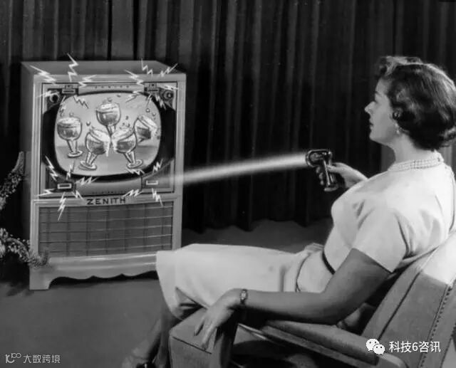图为一个女士正在使用最早的遥控器,发明者是曾经给爱迪生打下手的尼古拉·特斯拉,据说同样被认为是天才发明家,他成功发明出了电视遥控器并申请了专利。