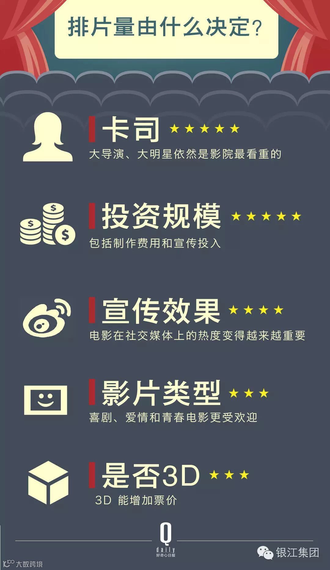 然而,排片率并不是影院经理一拍脑袋就可以决定的。有很多因素能够影响排片率。最重要的就是主创阵容,大导演和大明星的号召力不容小觑。