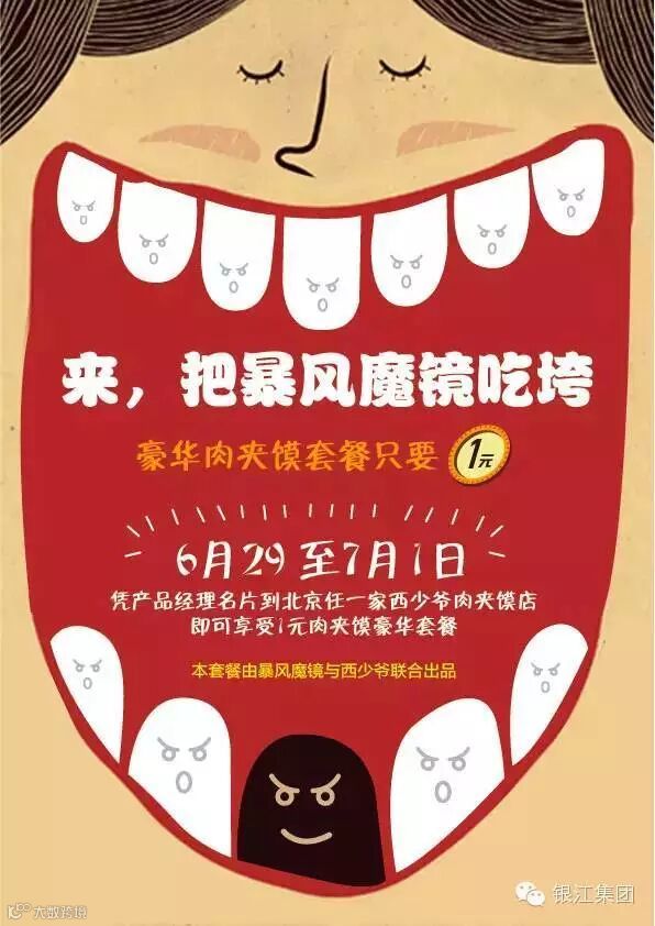 那好,既然我们需要很多互联网的产品经理,那我们就找到互联网企业集中的地方,去找那些产品经理就好了。最后,我们的计划是这样的,暴风魔镜跟西少爷肉夹馍在中关村、望京的店联合推出产品经理肉夹馍套餐,只要凭产品经理名片就可以1元吃套餐。当有了这些名片后,HR就可以筛选并用高薪和股权挖人了。