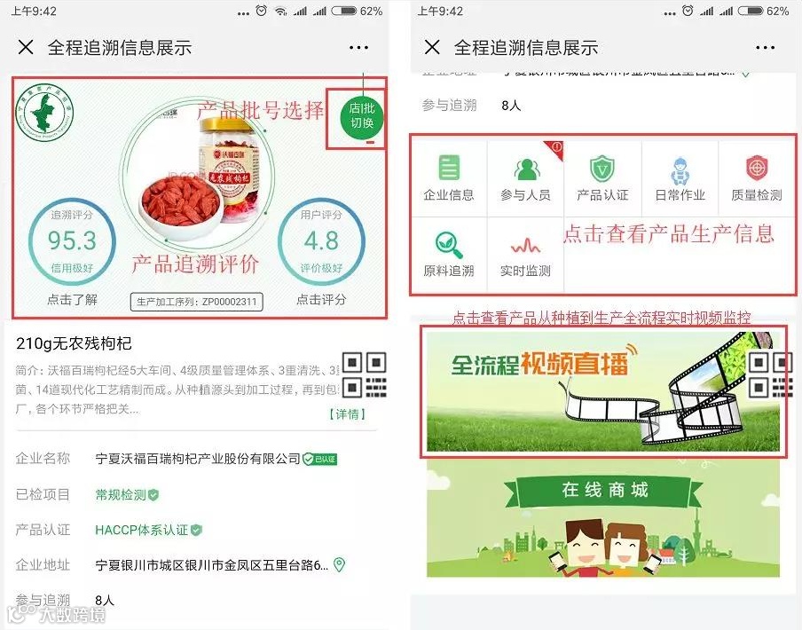 项目将智能仓储管理体系和沃福百瑞现有的产品追溯管理体系打通,助力企业建立健全集仓储管理、质量检测、追溯为一体的质量安全体系,实现产品从入库、库内管理、出库、运输、销售之间每一步环节的信息进行实时追踪,让消费者更加放心。