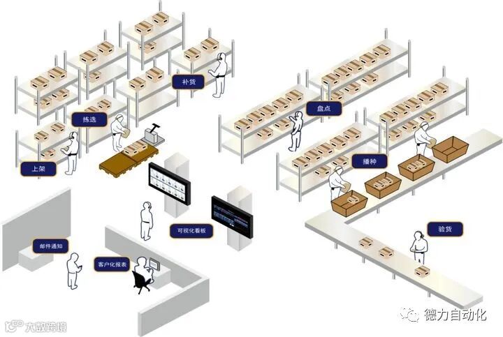 语音拣选:语音拣选系统会将WMS系统的指令转化为语音播报给作业人员,作业人员根据语音指令到达相应的货位,拣取货品,并通过口头语音应答来确认拣选作业的完成。