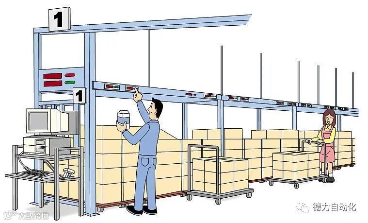 灯光拣选:是一种基于SKU管理的拣选方式,市面上常见的PTL拣选大多结合电子标签使用。在每个货位安装提示灯,指示操作人员到达哪个货位、拣选什么货品、数量是多少。适用于小型商品拣选,拣货位固定一位一品。其优势是效率和准确率高、不依赖员工的熟练程度,但布局建设完成后不易更改。