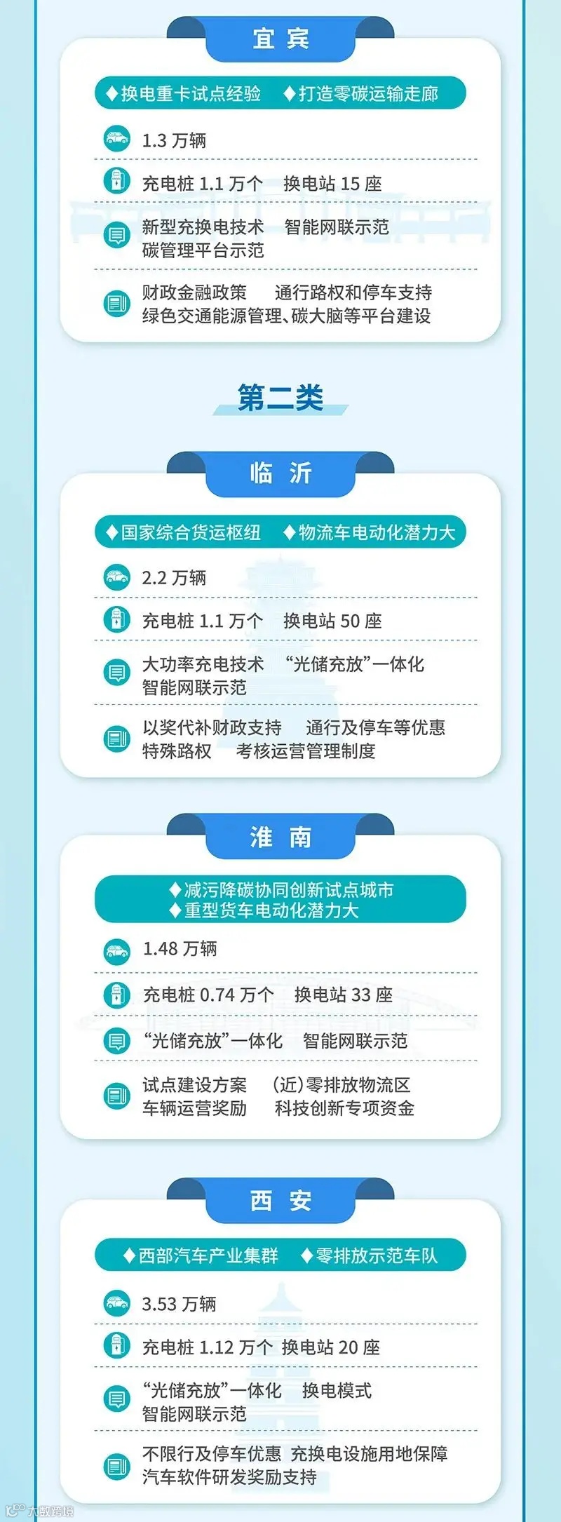 根据规划,预计10个城市在公务用车、出租车、城市公交车、环卫车、邮政快递车、城市物流配送车、机场用车、特定场景重型货车多个领域,新增推广新能源汽车超过25万辆,建设充电桩超过24万个。预计每年节省燃油超过140万吨、碳减排超过450吨。