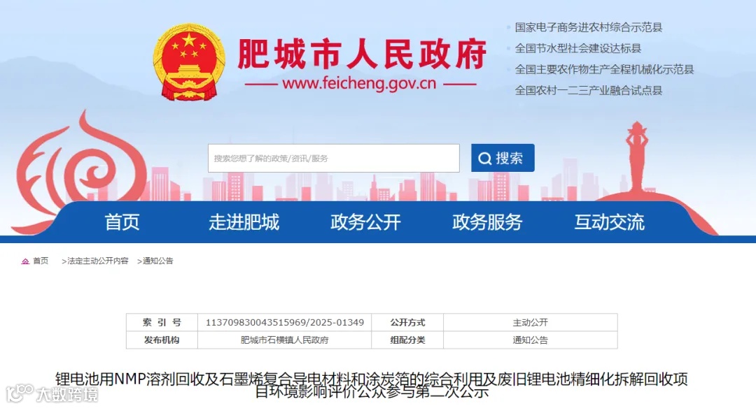 中工汽车网讯,6月9日,山东省肥城市人民政府消息显示,锂电池用NMP溶剂回收及石墨烯复合导电材料和涂炭箔的综合利用及废旧锂电池精细化拆解回收项目进行了环境影响评价公众参与第二次公示。