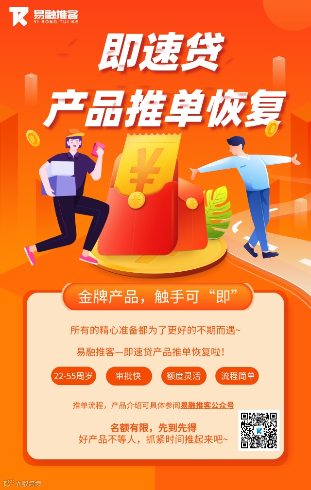 金牌产品,触手可“即”!即速贷推单恢复啦~