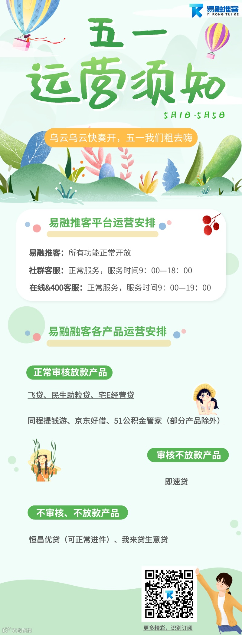易融推客五一假期运营须知~