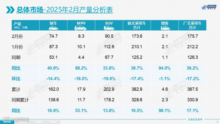 其中,2月自主品牌生产同比增长66%,环比下降13%;主流合资品牌生产同比增长10%,环比下降27%;豪华品牌生产同比下降17%,环比下降25%。