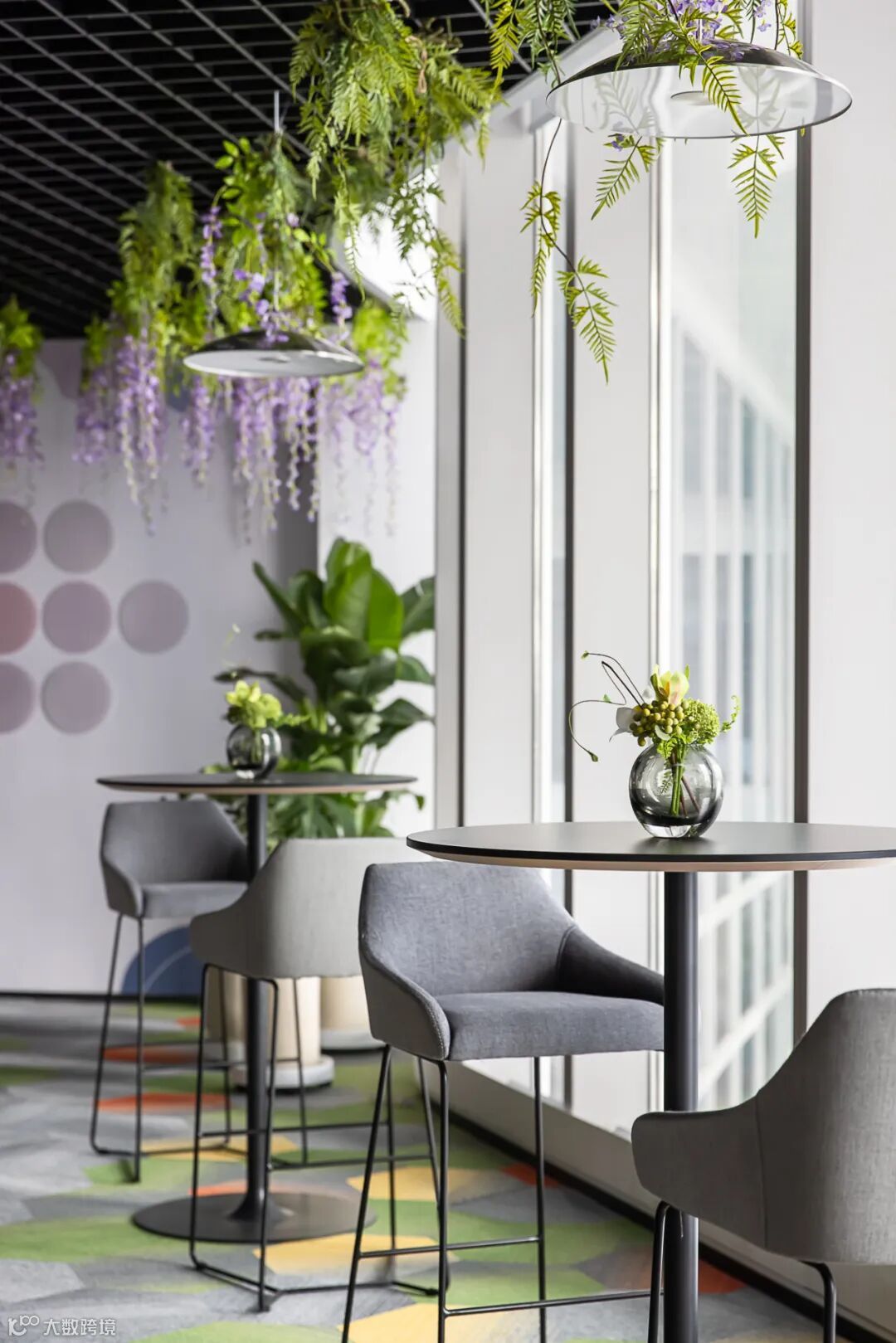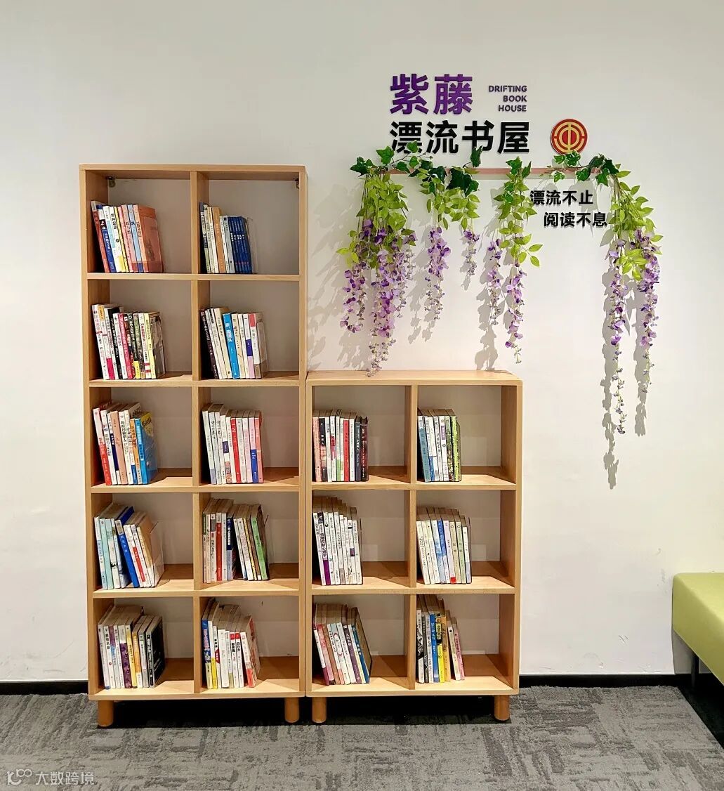 除了露台上的紫藤花,“紫藤花元素”还在园区内处处留影。浙数文化媒丽小家和浙数文化客厅“紫藤漂流书屋”的紫藤花,不仅滋养了人文情怀,还成了淬炼未来的芬芳记忆。