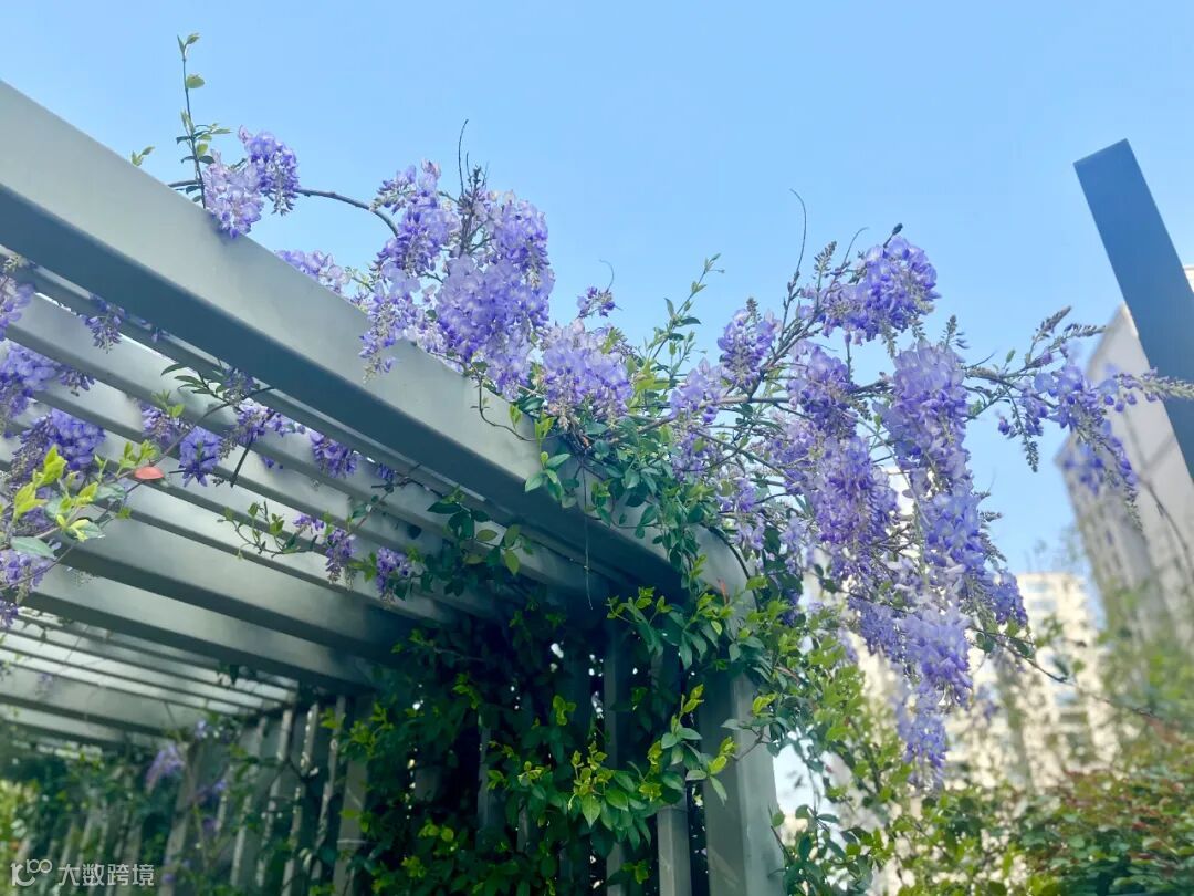 2023年9月,浙报数字文化科技园建成开园,为了传承浙报集团“紫藤花”的文化基因,团队特意将紫藤花种植在裙楼露台的花架上,象征着浙报集团的文化传承,推动浙数文化成为国内领先的数字文化产业集团。
