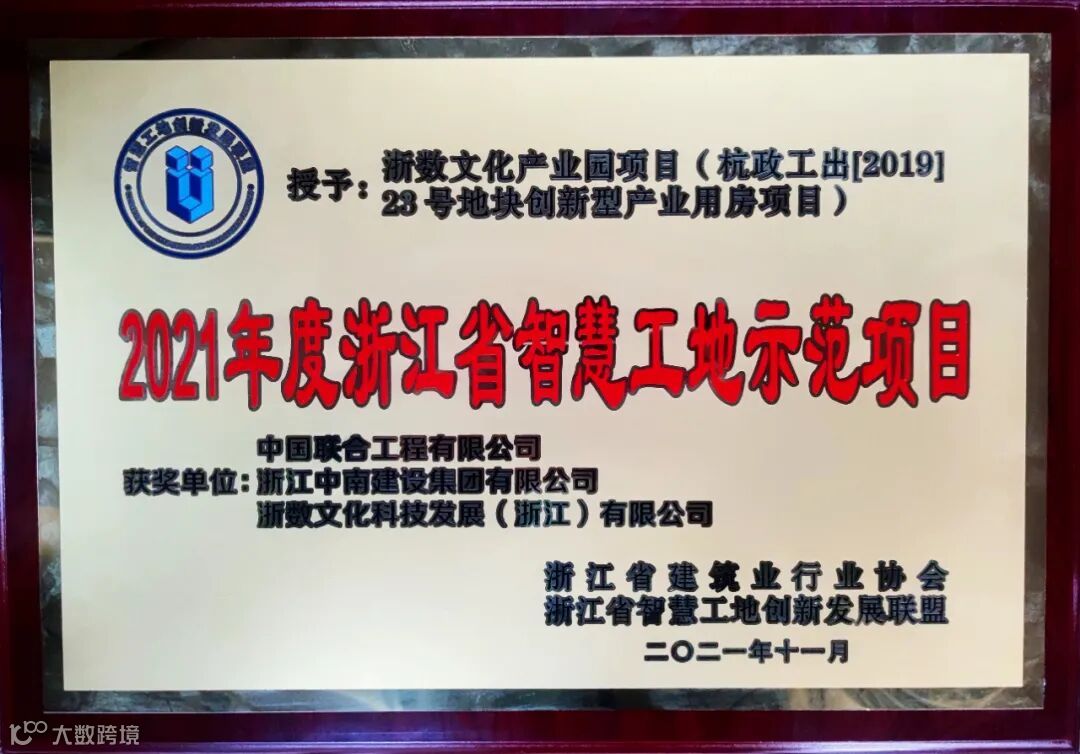 今天,由浙江省建筑业行业协会主办的2021年度浙江省智慧工地示范项目评选活动结果揭晓,浙数文化产业园荣获2021年度浙江省智慧工地示范项目。