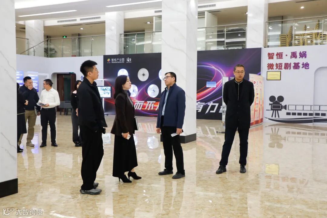 活动当天,与会领导嘉宾一同参观了智恒产业园展厅,智恒产业园总经理甘剑强对园区创意文化设计行业发展情况,以及接下来重点发展的D+M深港设计产业港项目、禹娲微短剧基地等进行了详细介绍。