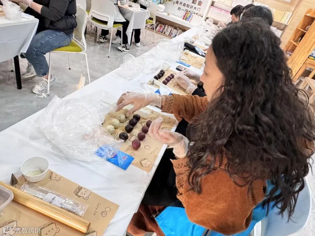 分组协作的模式让现场热闹非凡,有的小组负责称量食材,有的小组专注于造型设计,原本松散的食材逐渐融合,在大家灵巧的双手下桃花酥逐渐成型。