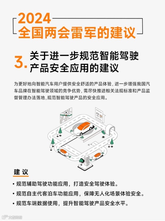 雷军表示,近年来,我国智能驾驶行业快速发展,先进的人工智能技术在智能驾驶的环境感知、决策规划、控制执行等场景实现广泛应用。为更好地向智能汽车用户提供安全舒适的产品体验,进一步增强我国汽车品牌在智能驾驶领域的竞争优势,需尽快推进相关法规标准和产品监督管理办法落地,规范智能驾驶产品的安全应用。