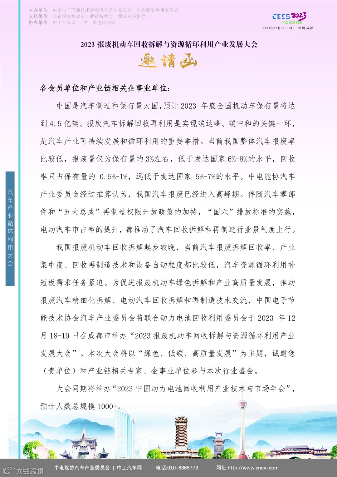 【倒计时38天】邀您共参成都2023报废机动车回收拆解与资源循环利用产业发展大会