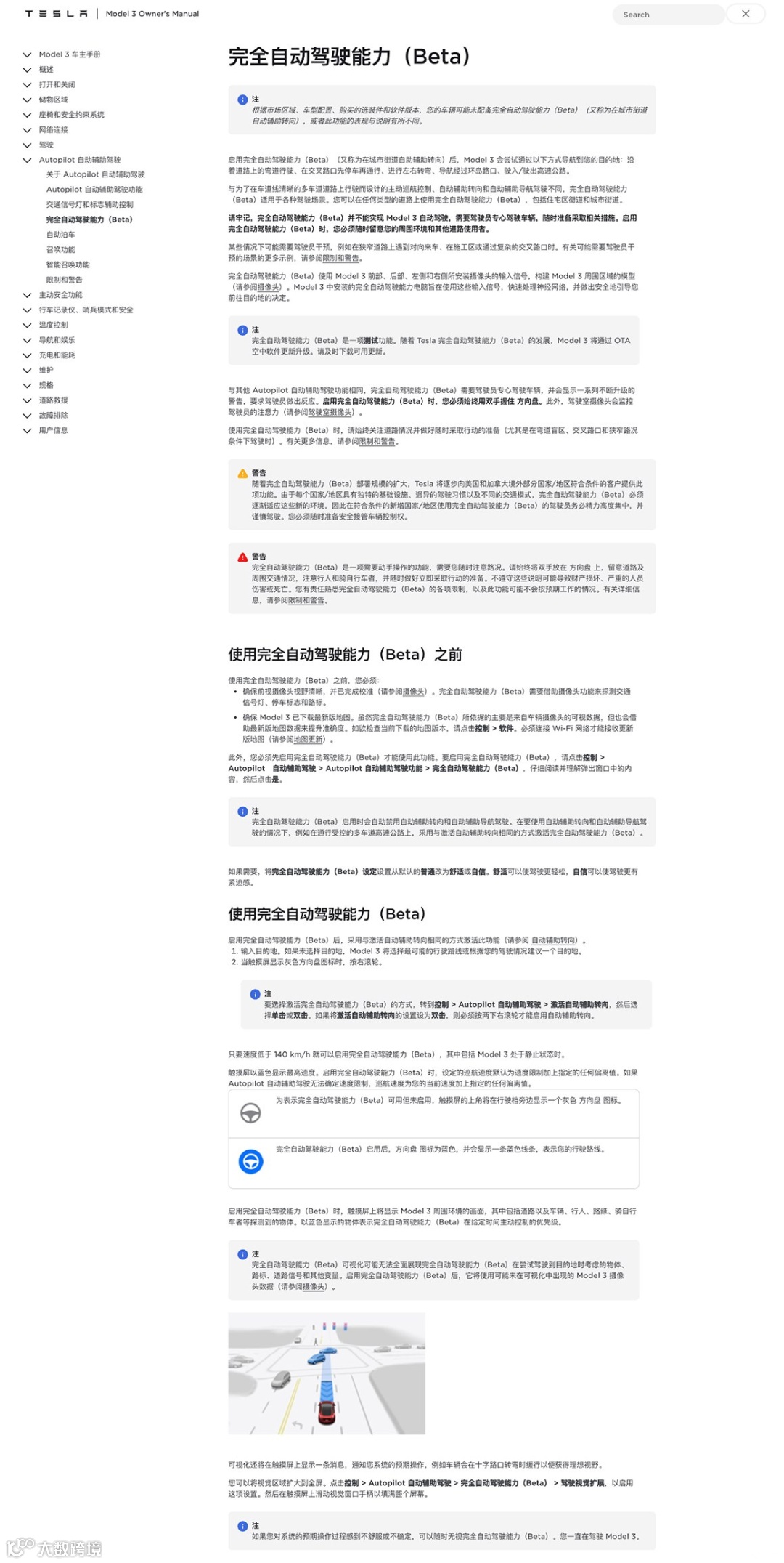 中工汽车网讯,11月21日,特斯拉中国官网在中国车主手册上更新加入了FSD Beta相关内容,预示着FSD即将落地中国。据悉,该功能是特斯拉完全自动驾驶能力的Beta版本,具备实现高速NOA城区NOA的能力,提供普通、舒适和自信三种模式。