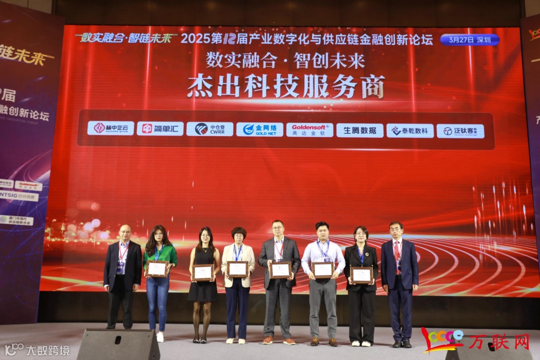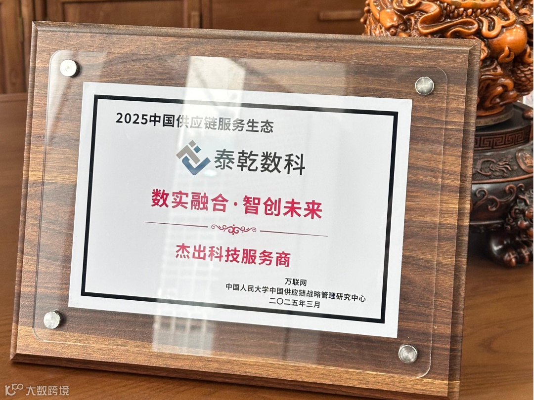 近日,深圳泰乾数字科技有限公司(以下简称“泰乾数科")在“2025中国供应链服务生态'数实融合•智创未来'"评选中荣获“杰出科技服务商"称号。该奖项由万联网与中国人民大学中国供应链战略管理研究中心联合颁发,旨在表彰在供应链服务生态中推动数字技术与实体经济深度融合的标杆企业。此次获奖标志着泰乾数科在产业数字化与产业数字金融领域的创新实践获得了行业权威认可。