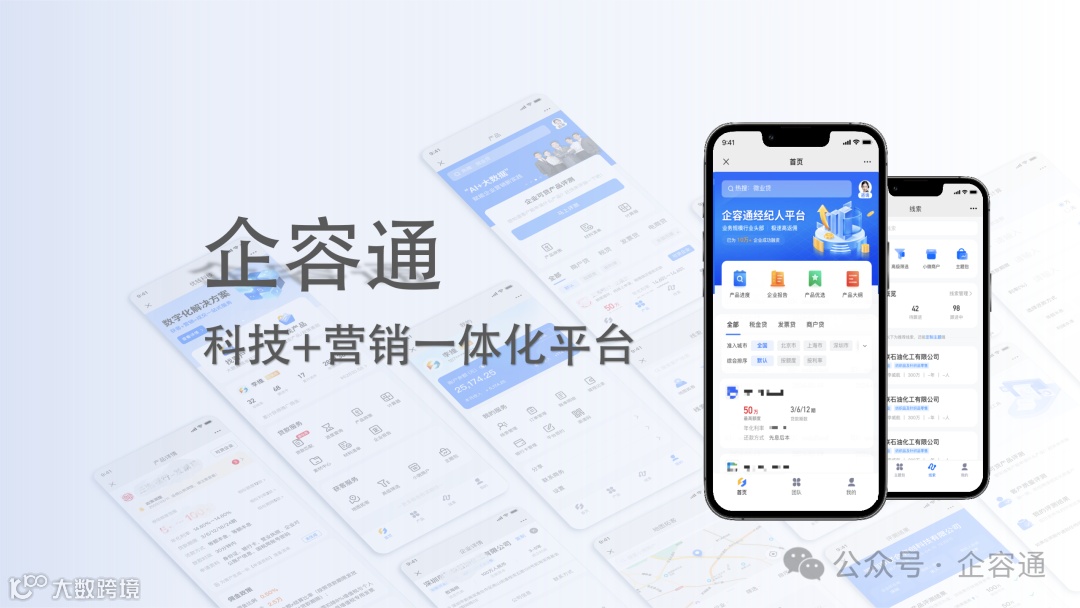 企容通以大数据和人工智能为技术引擎,深入挖掘企业目标客户群体的需求和特征;通过智能分析,企业可以更加清晰地了解客户需求,进而精确匹配适合的金融产品;结合人机耦合等先进技术在线智能营销,企业可以显著提升销售转化效率。企容通旨在为KA、客户经理等从业人员或经纪机构等需求金融产品、企业客户线索、展业