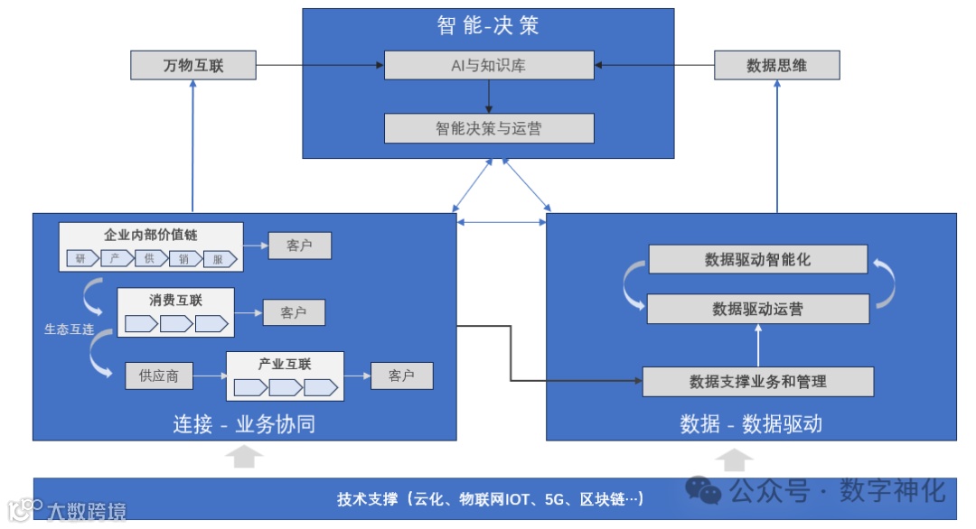 数字化转型的底层逻辑可归纳为 “一个核心目标、两大驱动引擎、三层协同体系”: