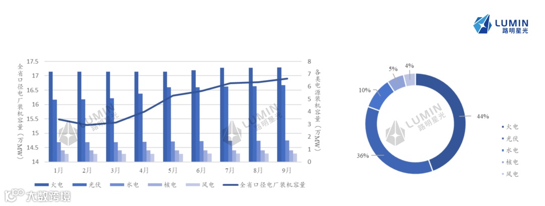 图6-7:2025年1月至9月浙江省发电情况及占比