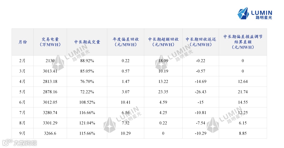 表1:2-9月售电侧中长期考核、返还及损益调节费用(正数费用代表售电侧成本增加)