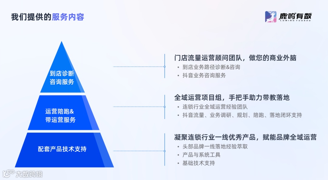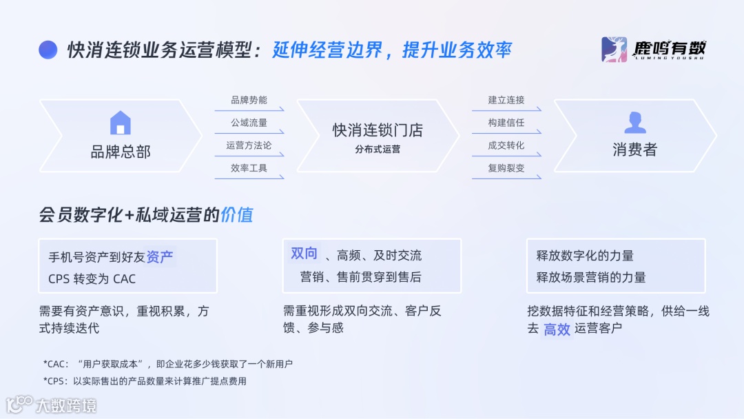 鹿鸣服务的品牌中,像百果园从 2016 年开始做会员数字化,在企微私域上通过分布式模式做好客户运营,现如今会员数超过 8000 万,企微私域客户量超过 1600 万,会员整体复购率达到 49%,会员全年贡献收入超 72 亿。 深圳市鹿鸣数字营销科技有限公司是国内领先的会员数字化(咨询+产品+运营)解决方案服务商,[鹿鸣]作为“鹿鸣有数”自主研发、行业领先的会员数字化运营产品,帮助企业从公域到私域闭环的全域运营,助力连锁品牌解决获客、运营、会员数字化问题。