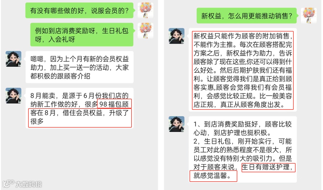 来自一线门店的真实反馈。会员权益不是主推项目,是基于品牌力、产品力、手法、营销活动等综合基础上,助力成单。